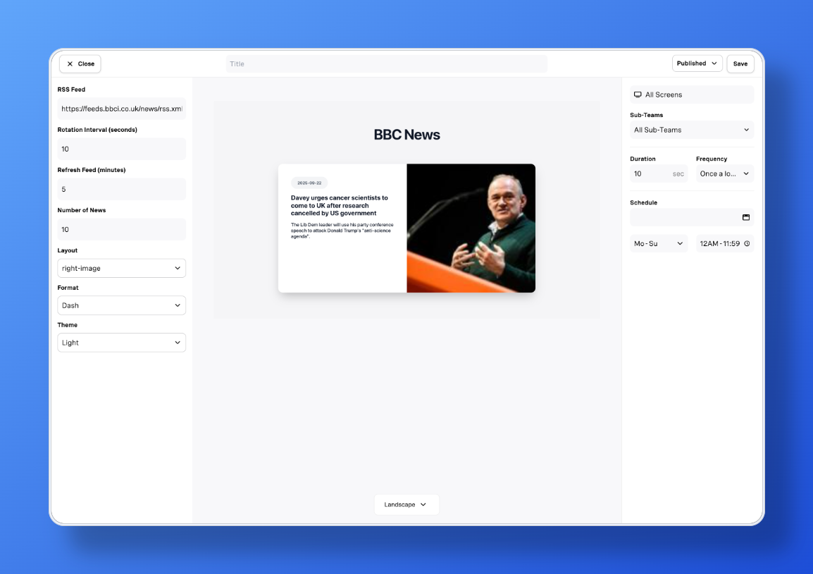 Our RSS feed app allows you to import content directly from blogs, news portals or specialist sites. No additional effort — content appears immediately as soon as it is published.