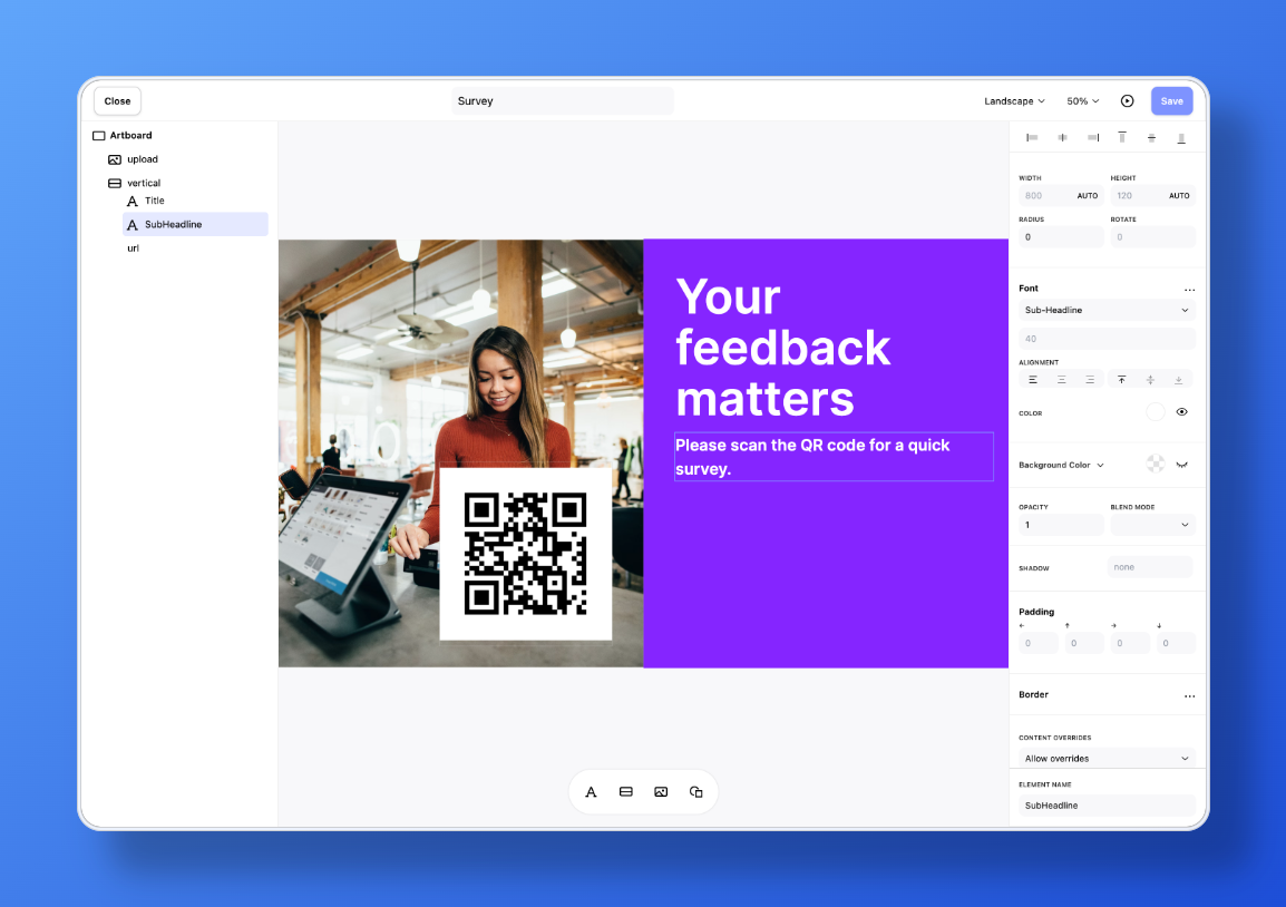 With the template designer, you can create individual layouts — from scratch or as an adaptation of existing templates. Perfect for consistently showing branding, typography, and style.